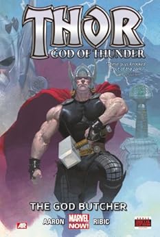 Throughout the ages, gods have been vanishing, their mortal worshippers left in chaos. NOW!, Thor follows a trail of blood that threatens to consume his past, present and future. The only hope for these ravaged worlds is for Thor to unravel the gruesome mystery of the God Butcher! In the distant past, Thor follows the bloody wake of murdered gods across the depths of space. In the present, the Thunder God discovers a forgotten cave that echoes with teh cries of tortured gods...and is shocked to find himself among them! And thousands of years from now, the last god-king of a ruined Asgard makes his final stand against the God Butcher's beserker legions. As three Thors from three eras race to stop the God Butcher, the full extent of his vicious scheme takes terrifying shape!